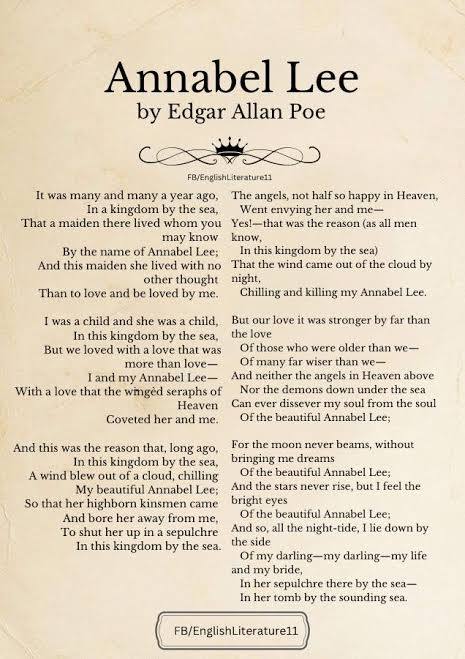 Later, she is marked by the impossible- to - utter - grieving caused by the death of her sister Myrtle. It is only the poets, she broods, following her mother, who can voice the lashing pain of this bereavement. "Annabel Lee, in a Kingdom by the Sea" by Edgar Allan Poem serves Janet to articulate the pain of Myrtle's absence: